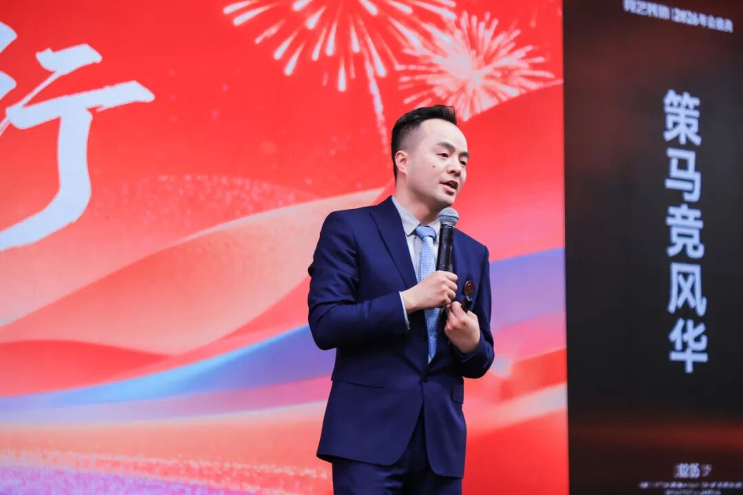 盛典在激昂的氛围中拉开帷幕。竞艺装饰董事长曹世杰登台致辞。他深情回顾了公司在过去一年中穿越行业周期、坚定前行的不凡历程,高度赞扬了全体同仁以匠心坚守品质的奋斗精神。曹总从宏观战略与文化根基出发,描绘了公司未来的发展愿景,强调了持续为客户创造价值、为员工搭建舞台的核心承诺,其充满力量与情怀的发言,奠定了整场年会激昂向上的基调。